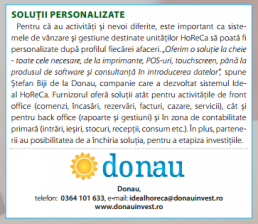 Revista deserveste sectorului de alimentatie publica si industriei HoReCa de peste 10 ani si se adreseaza exclusiv operatorilor şi antreprenorilor din domeniu, furnizand informatii esentiale pentru activitatile pe care le desfasoară acestia.